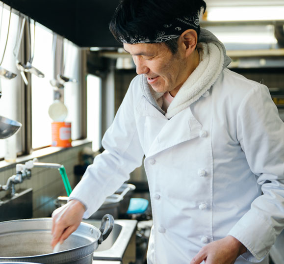 清風荘の厨房を取りしきる、「ひでさん」こと古屋英樹さん。