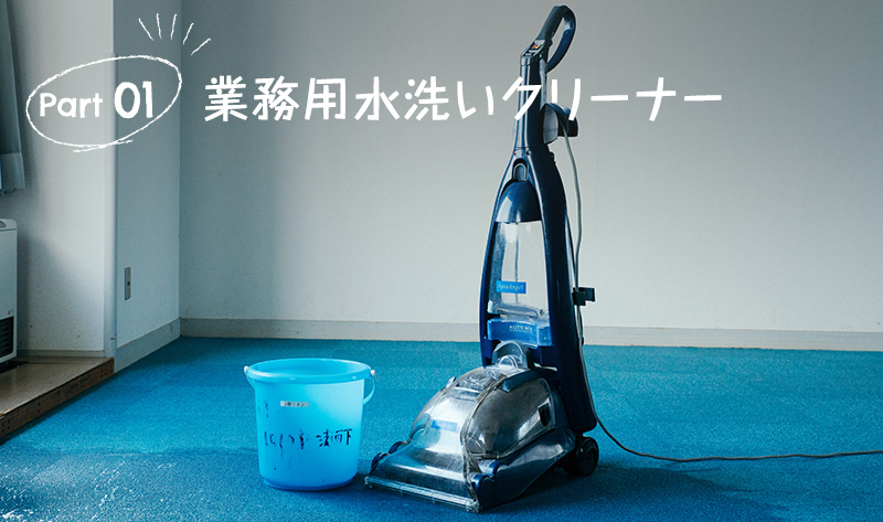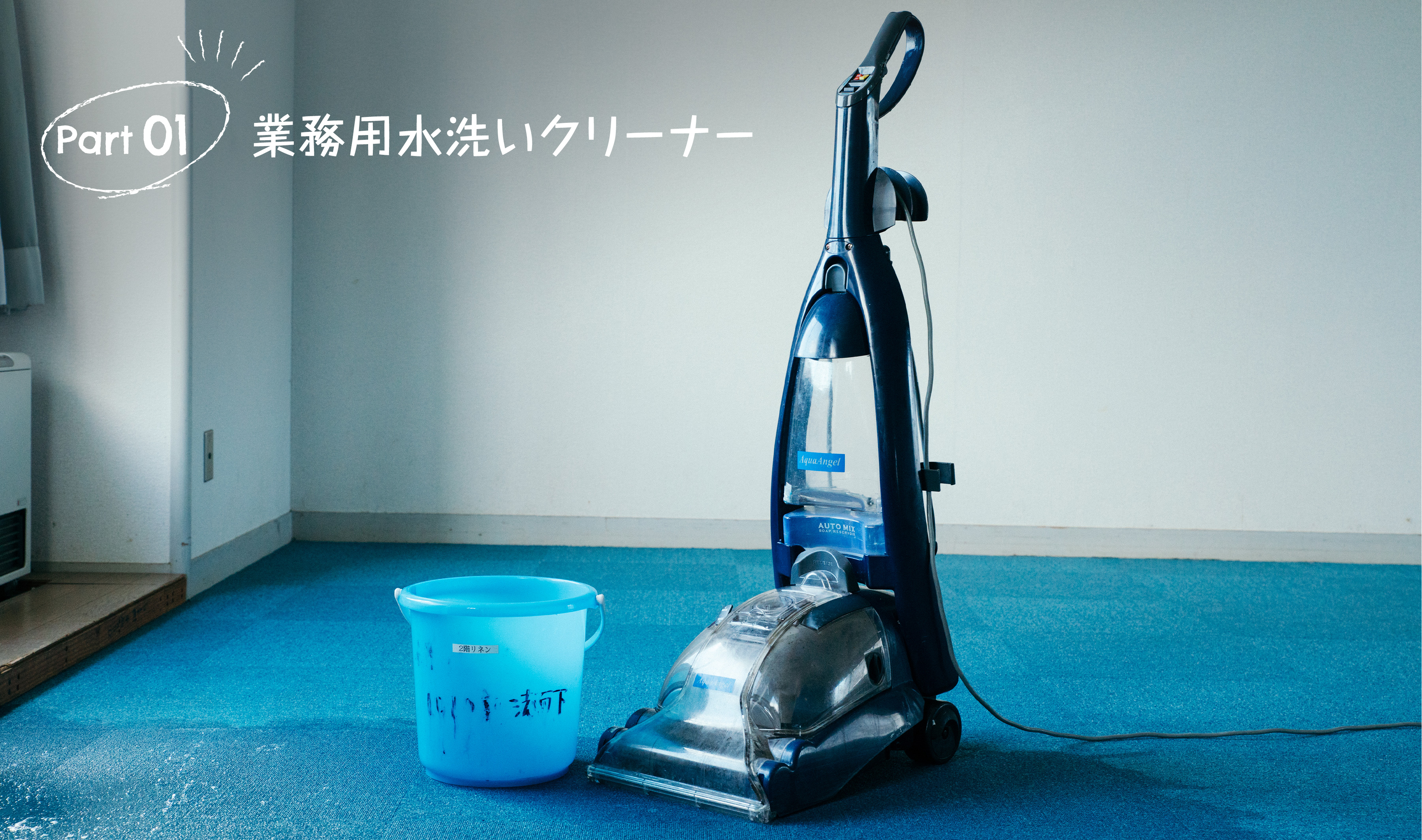 掃除機のごとく吸引力で、汚れと一緒に水を吸い上げ、カーペットはピカピカになるというしくみ(実は、どこよりもスタッフの集まる事務所が一番汚かったのだとか)。