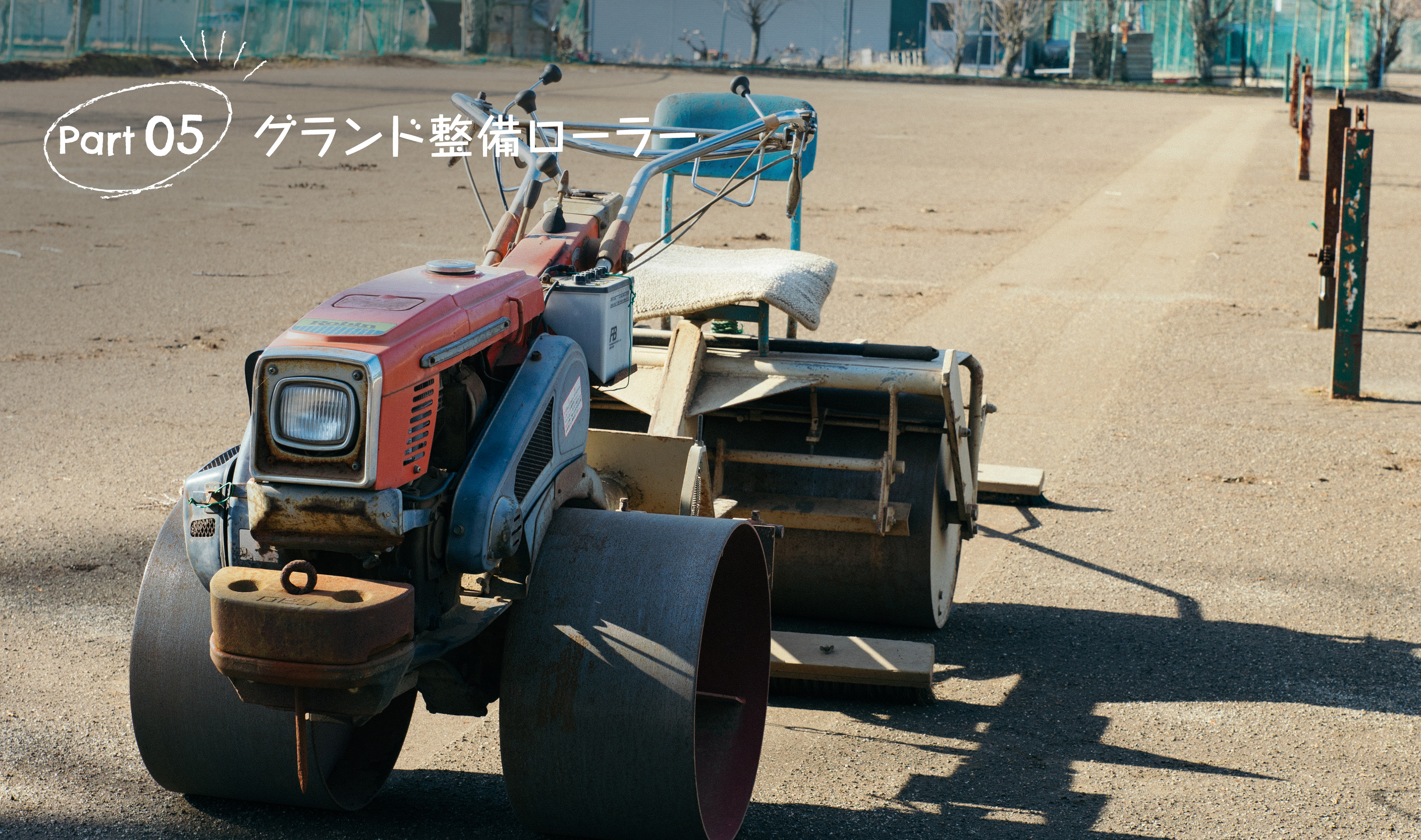 13面もあるコートのひとつひとつを丁寧に整地してくれるのが、グランド整備ローラー丁寧に整地してくれるのが、グランド整備ローラー