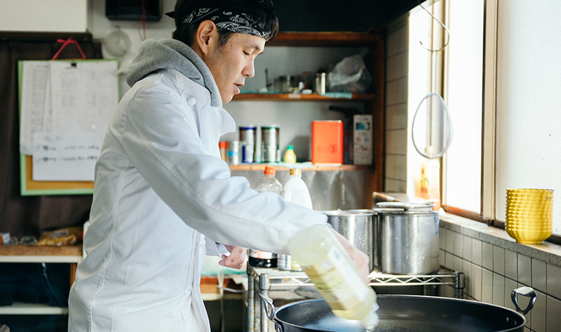 調理師専門学校卒業後、鰻割烹、中華経験後山梨県に戻り、製麺所で麺を覚え、義理の兄と製麺所とうどん屋を立ち上げる。